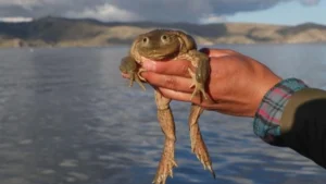 La rana gigante del Titicaca: patrimonio natural y en peligro por el consumo humano