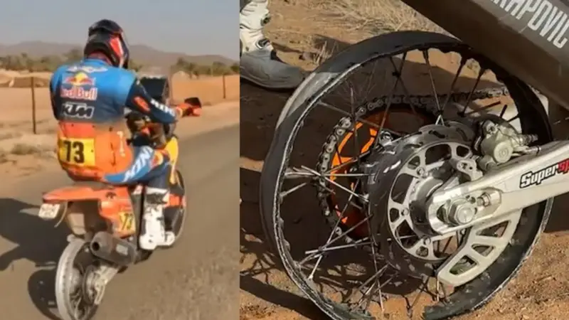 El competidor español sufrió un pinchazo en la rueda trasera durante la quinta etapa del Dakar y, aunque finalmente tuvo que abandonar la competencia, logró avanzar los últimos tramos del recorrido con la llanta completamente dañada.