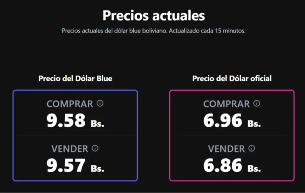 Por otra parte, el portal bolivianblue.net, que actualiza sus datos cada 15 minutos, reporta cifras similares. Este sábado, el denominado dólar blue boliviano se cotiza en 9,58 BOB para la compra y 9,57 BOB para la venta, confirmando una relativa estabilidad en el mercado paralelo.