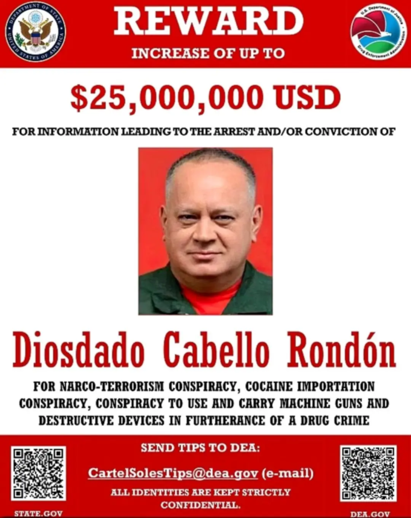 Tras la histórica detención de Nicolás Maduro el pasado 3 de enero de 2026, el Departamento de Estado de los Estados Unidos ha ratificado y actualizado su programa de recompensas, desplazando el foco principal hacia el «núcleo duro» que aún permanece en territorio venezolano. Diosdado Cabello, actual ministro de Interior y Justicia, lidera ahora el cartel de búsqueda con una recompensa activa de 25 millones de dólares.